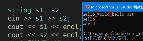 如图,分别遇到两次空格,然后截断读取,所以导致后面的无法输出。