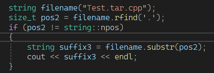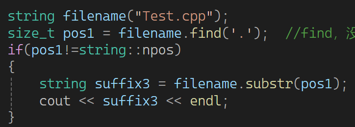 size_t pos = filename.find('.'); //找到‘'.' 的索引,并返回给pos