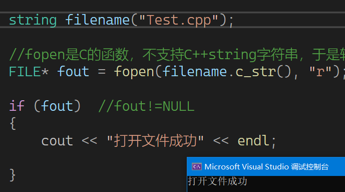 为了解决这个问题,C++提供了c_str()函数,可将string类型的字符串转换成const char*