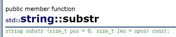 从 pos 位置开始,拷贝 len 个长度的子字符串然后 传值返回,其中pos默认为0,len默认为npos