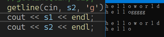 如图,换行符并不会中止读取了,而是 g ,遇到 g 时读取停止,但此时并未结束程序