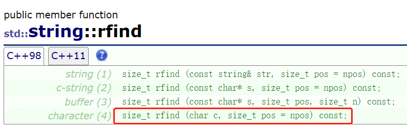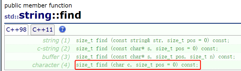 这是find函数,string的成员函数。最常用的就是图中红框的第四个: