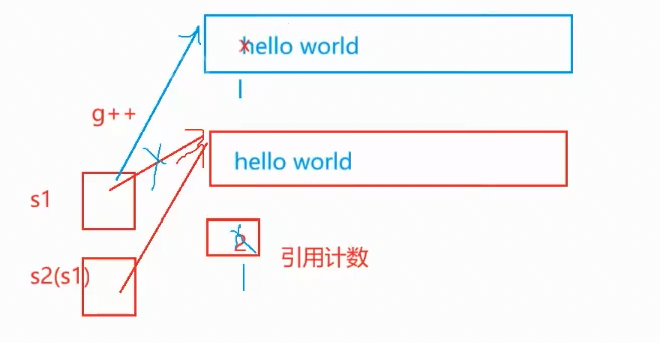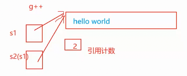 如果此时我们要修改资源,那就会使s2也被修改,那写时拷贝的作用就来了:如果引用记数是1,那就直接写(修改