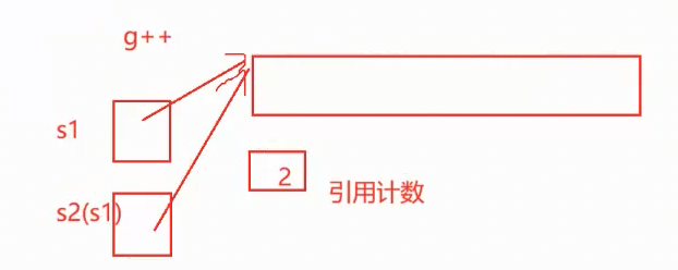 就是这片空间的使用者,每多一个,引用记数就+1,s1构造时,引用记数变成1 ,s2拷贝构造的浅拷贝,使s2也指向这空间,那引用记数变成2