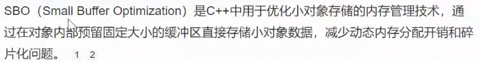 SBO本质是以空间换时间。 对象比较小时,就不去堆上开空间,存在_Buf 上 比去堆上开空间更省时间,缺点是可能浪费空间。