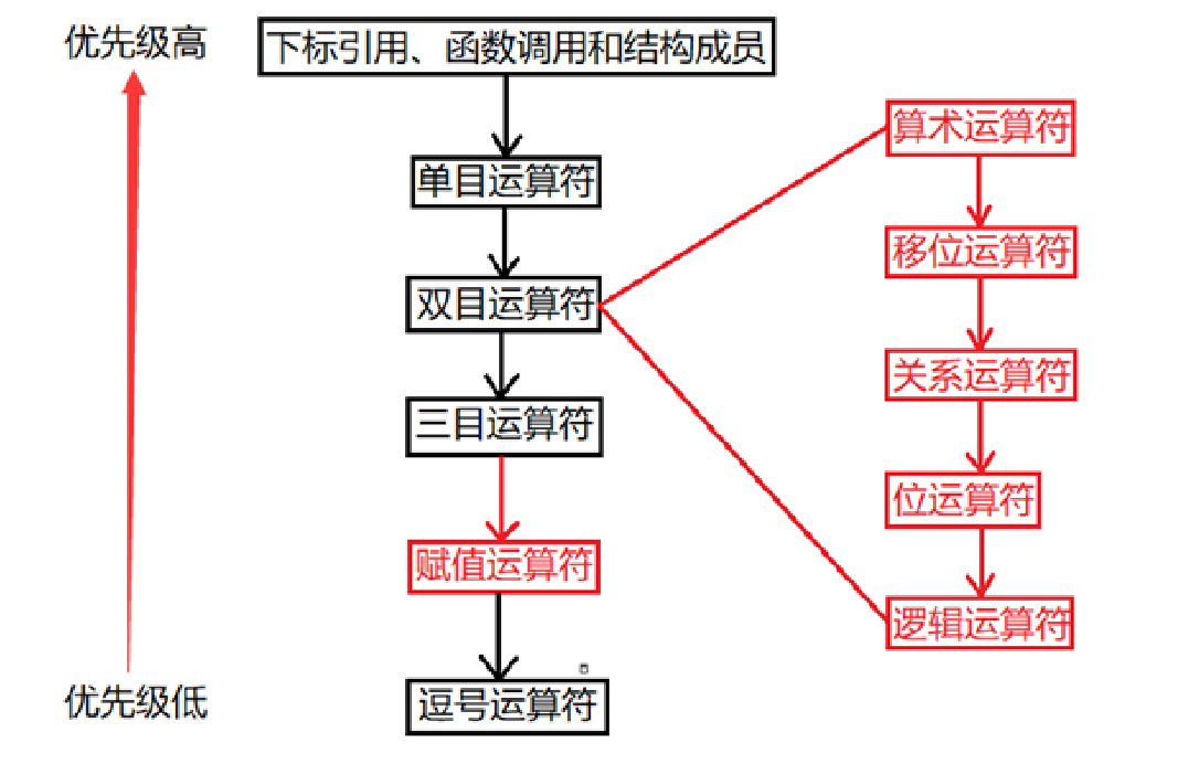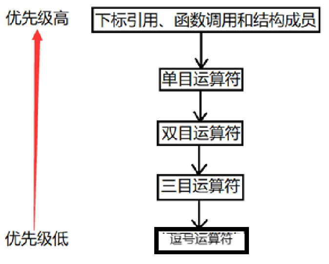 优先级最高的其实并不是真正意义上的运算符,包括数组下标、函数调用操作符和各结构体成员选择操作符。