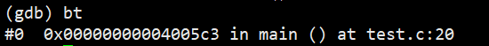 bt,查看函数调用堆栈(即各级函数调用及其参数)