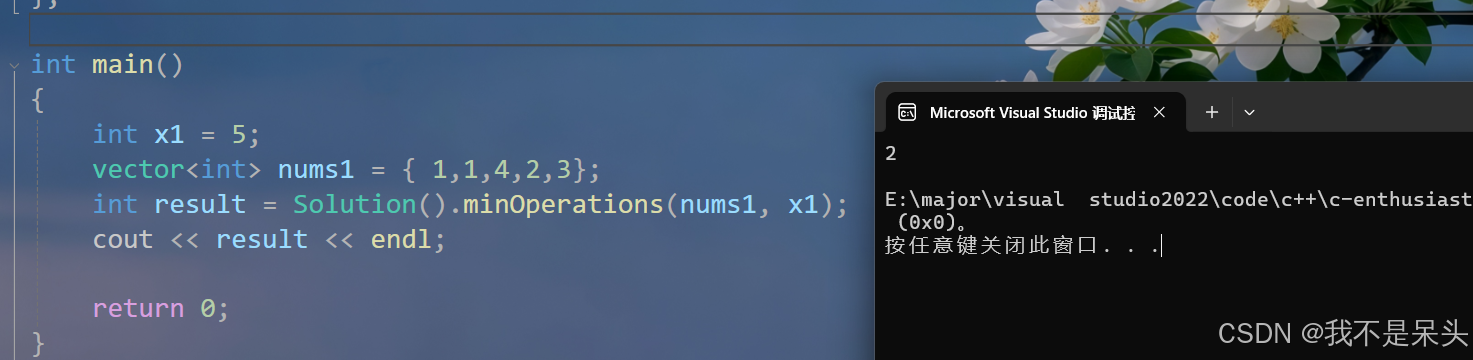 };//最大连续1的个数 & 将x减到0的最小操作数
