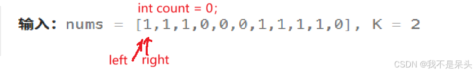 if (nums[left++] == 0) count--;//=0的时候count--后left会++到下一个位置