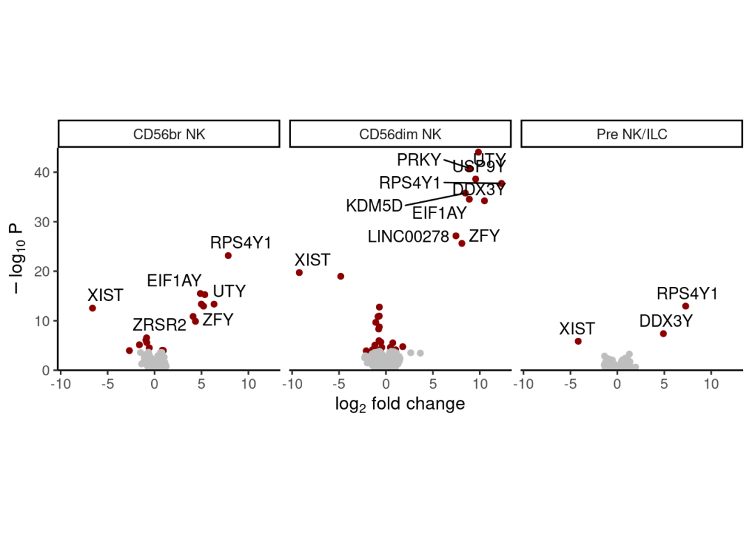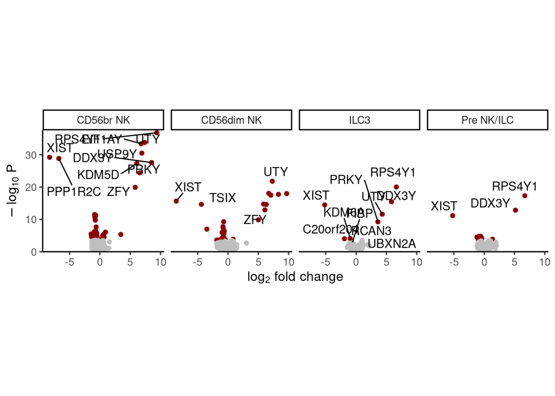 )上述的差异分析比较,执行的是不同组织中,不同celltype中性别差异基因: