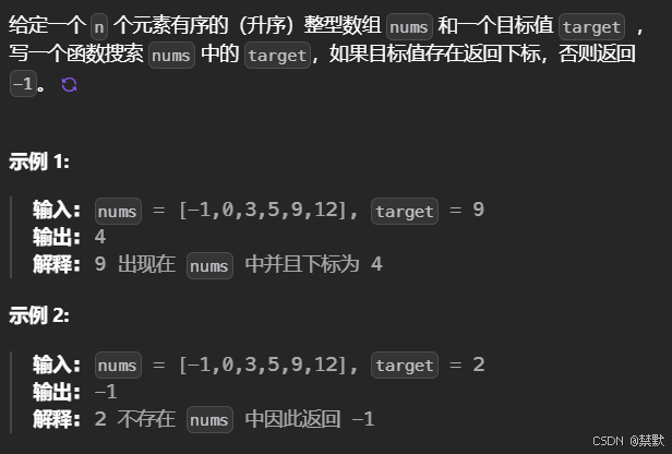 (left + right) / 2,为了避免溢出也可以写成left + (right - left) / 2。有时候也写成 left + (right - left+1) / 2,两者区别就是在偶数个数据时,一个是取左边,一个是取靠中间右边。可以理解成向下或者向上取整。mid + 1,因为目标值必定在右侧区间。mid - 1,因为目标值必定在左侧区间。left > right)。如果整个数组中没有找到目标值,则返回一个特殊值(如-1)表示未找到。