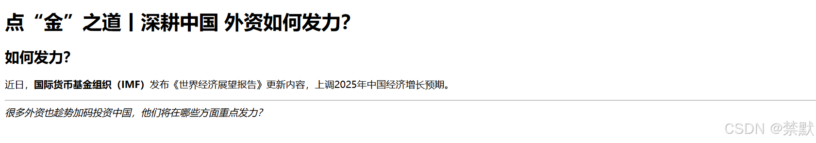 近日,<strong>国际货币基金组织(IMF)</strong>发布《世界经济展望报告》更新内容,上调2025年中国经济增长预期。