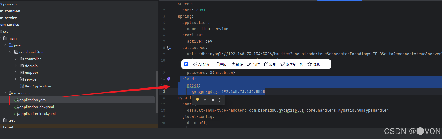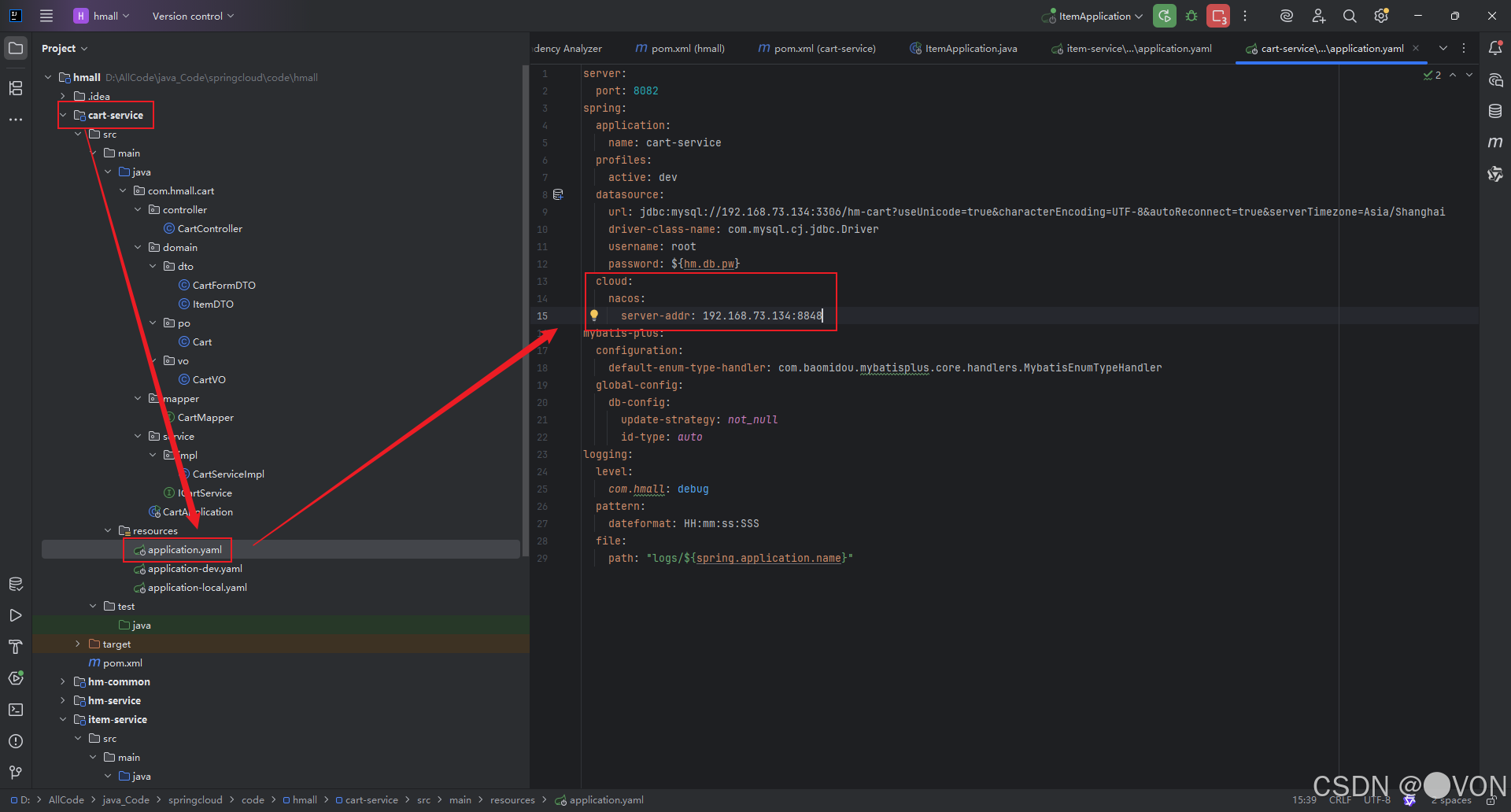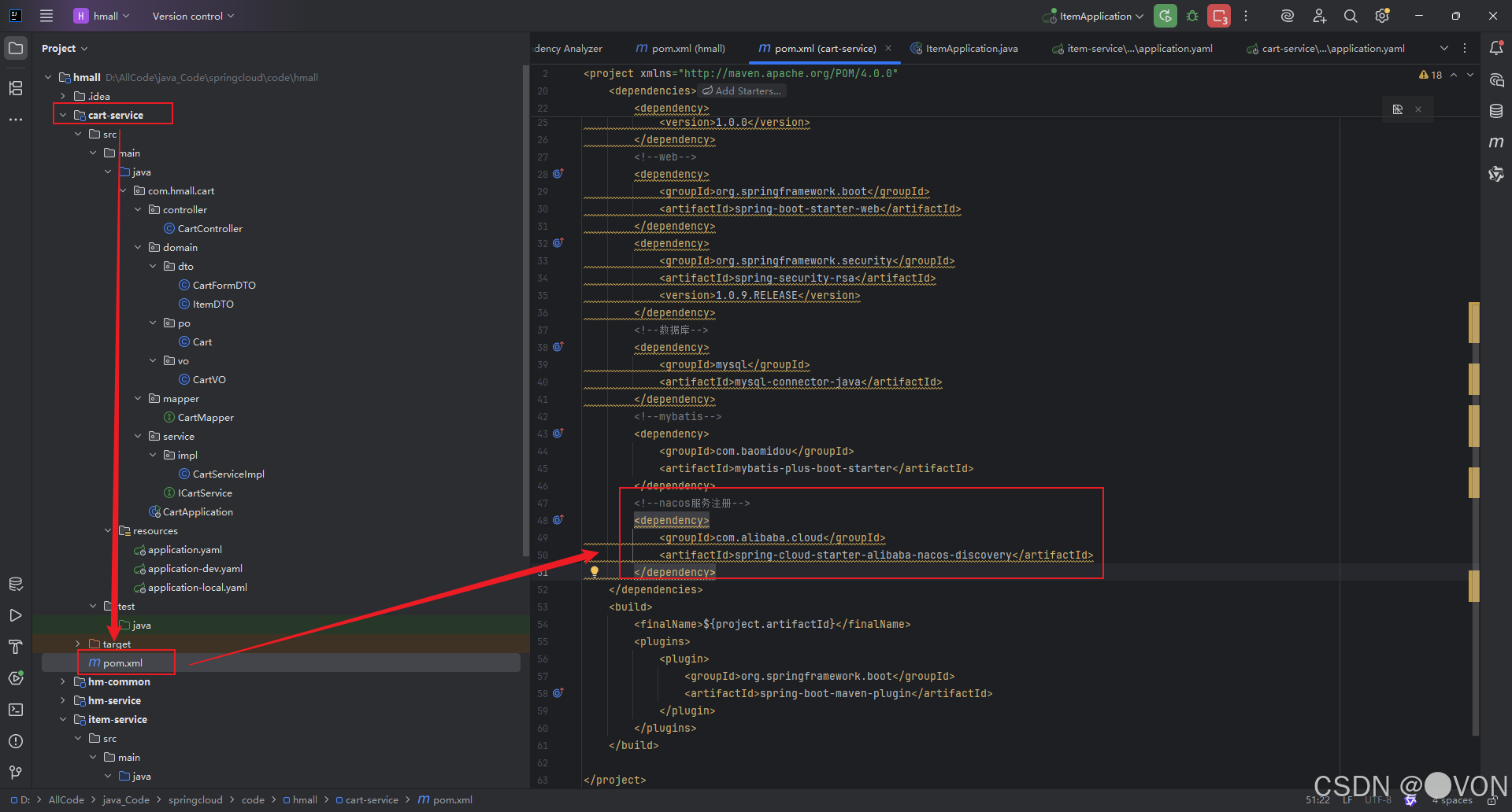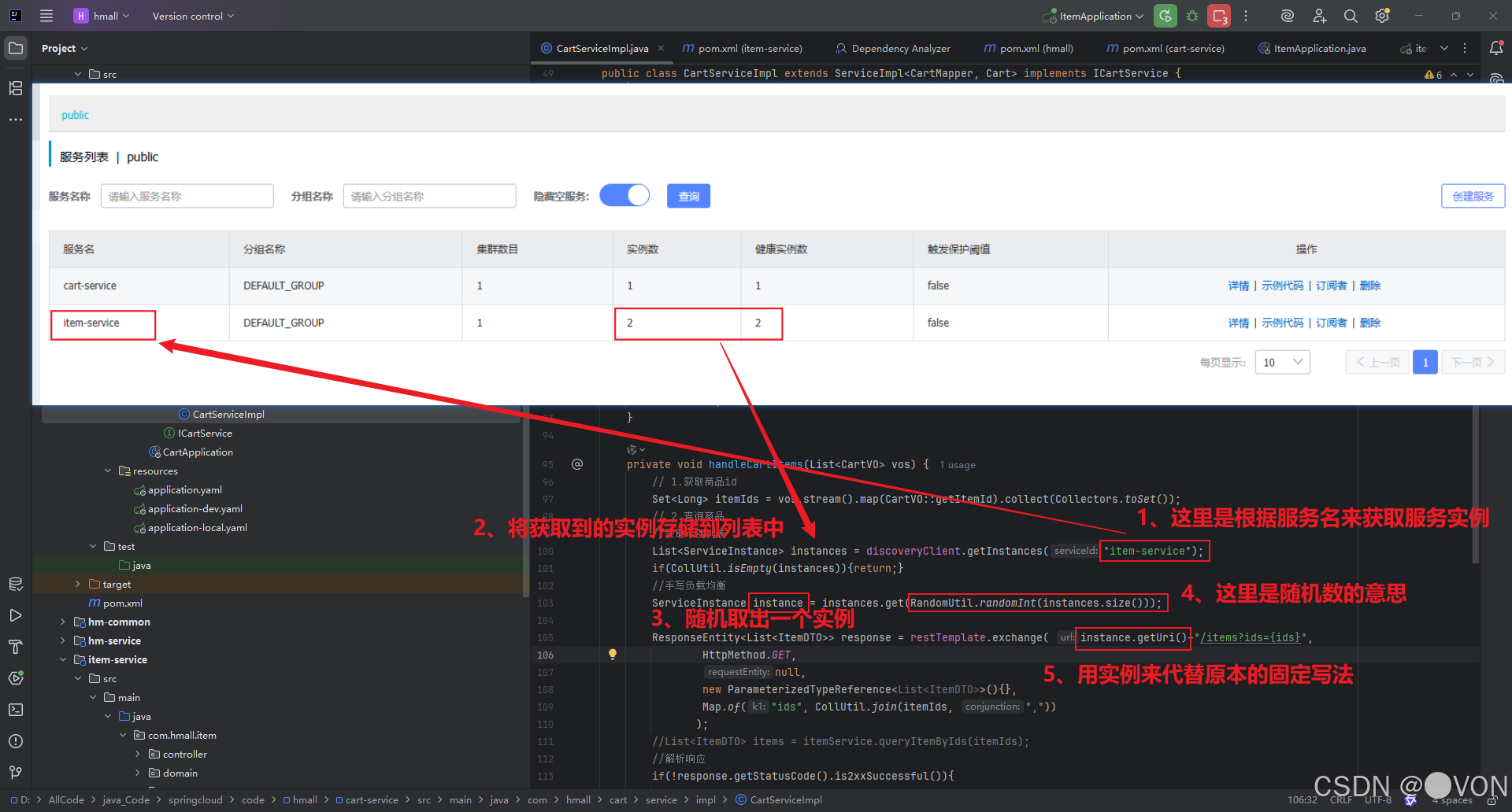 主要内容包括:1. 解决前一天的数据库连接问题;2. 拆分购物车服务模块,创建cart-service并改造pom文件;3. 实现服务间远程调用,使用RestTemplate发起HTTP请求;4. 部署Nacos注册中心,包括创建数据库和在Docker中运行Nacos;5. 实现服务注册与发现功能,通过动态服务地址实现高可用。文章详细记录了开发过程中遇到的问题和解决方法,包括IP变更、服务调用切换等实际操作细节。