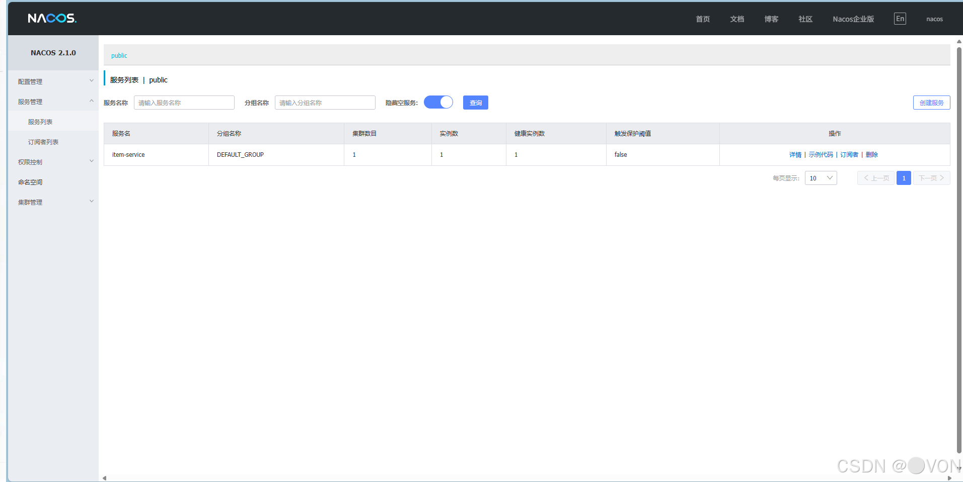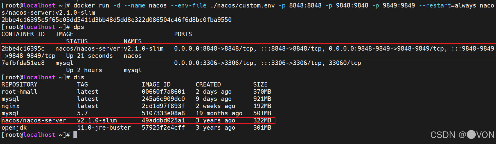docker run -d --name nacos --env-file ./nacos/custom.env -p 8848:8848 -p 9848:9848 -p 9849:9849 --restart=always nacos/nacos-server:v2.1.0-slim显示这样就没什么问题了