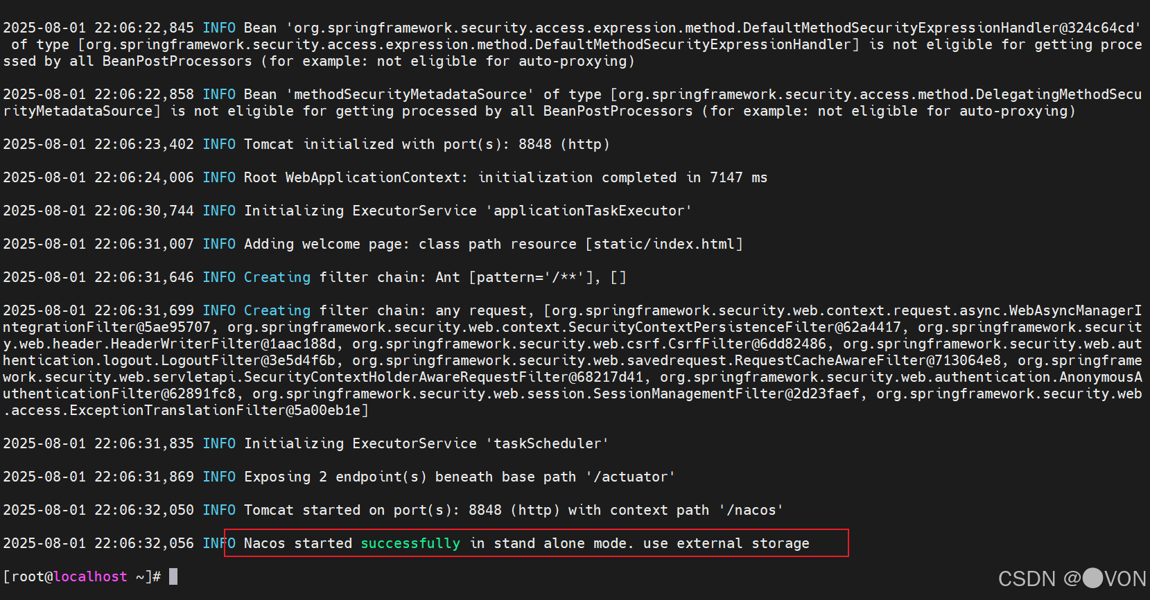 可以运行docker logs nacos查看下日志,可以看到success代表成功了