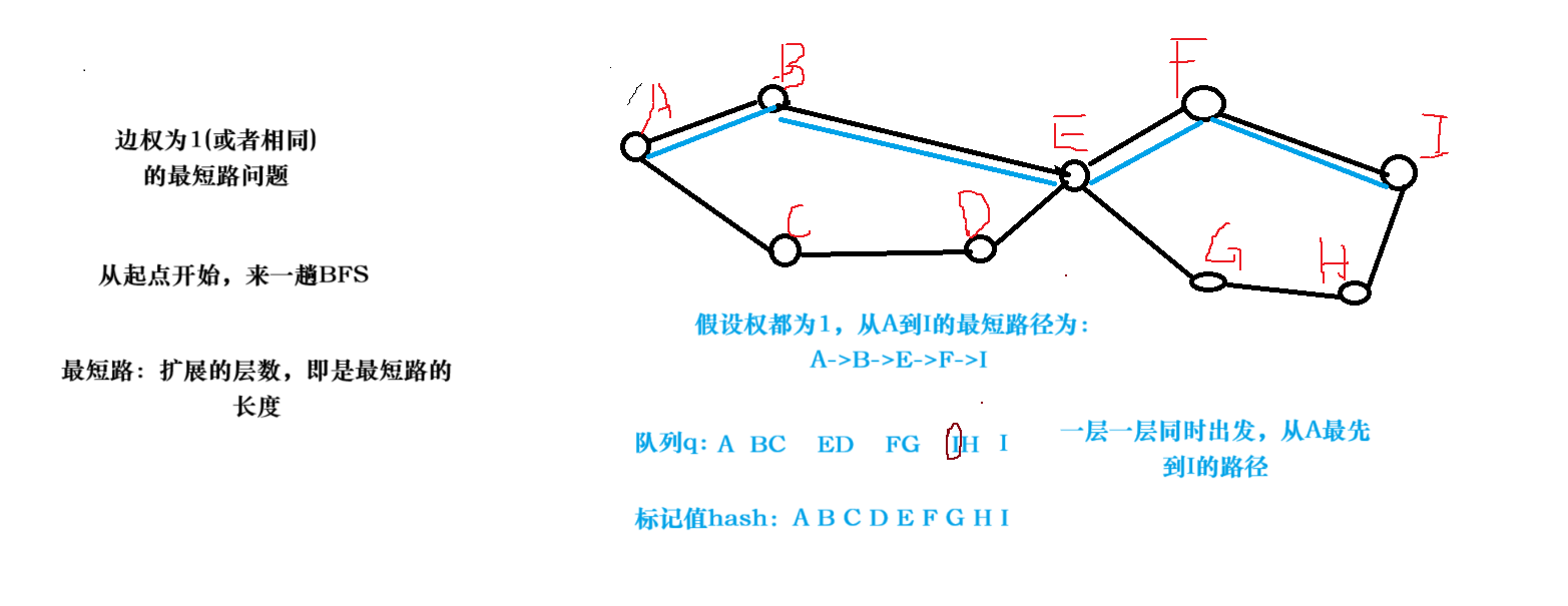 BFS 是在 无权图中寻找最短路径的“天然之选”,它以层级方式逐步扩展,第一次访问一个点就是最短路径。