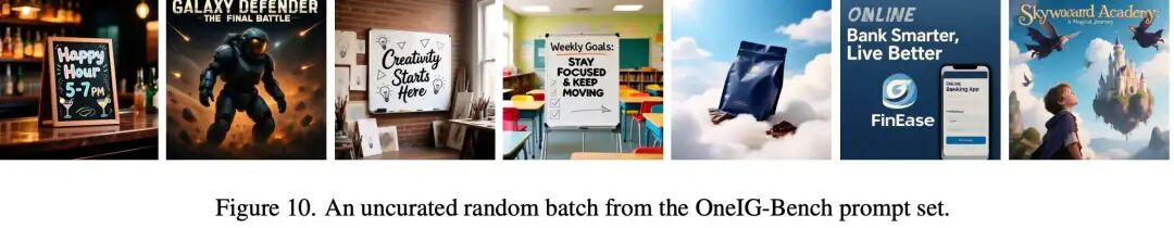 评估协议 (Evaluation protocol)。 对来自三个不同提示集的高分辨率 图像生成进行全面评估:(a) 来自 COCO 2014 验证集的 10K 标题,(b) 来自 HPSv2 基准的 3200 个提示,(c) 来自 OneIG-Bench的 1120 个提示,(d) 来自 GenEval 基准的 553 个提示,(e) 来自 DPG-Bench的 1065 个提示,以及 (f) 来自 LongText-Bench的 160 个提示。对于 COCO 和 HPSv2 集,我们报告常见指标,包括 FID、补丁 FID (pFID)、CLIP 相似度、VQAScore和 HPSv2.1。在 COCO 提示上,FID 是针对真实图像计算的,反映数据对齐。在 HPSv2 上,CLIP 和 VQAScore 衡量提示对齐,而 HPSv2 捕捉人类偏好对齐。对于 OneIG-Bench、GenEval、DPG-Bench 和 LongText-Bench,采用其官方评估协议并基于其各自的基准指标报告结果。