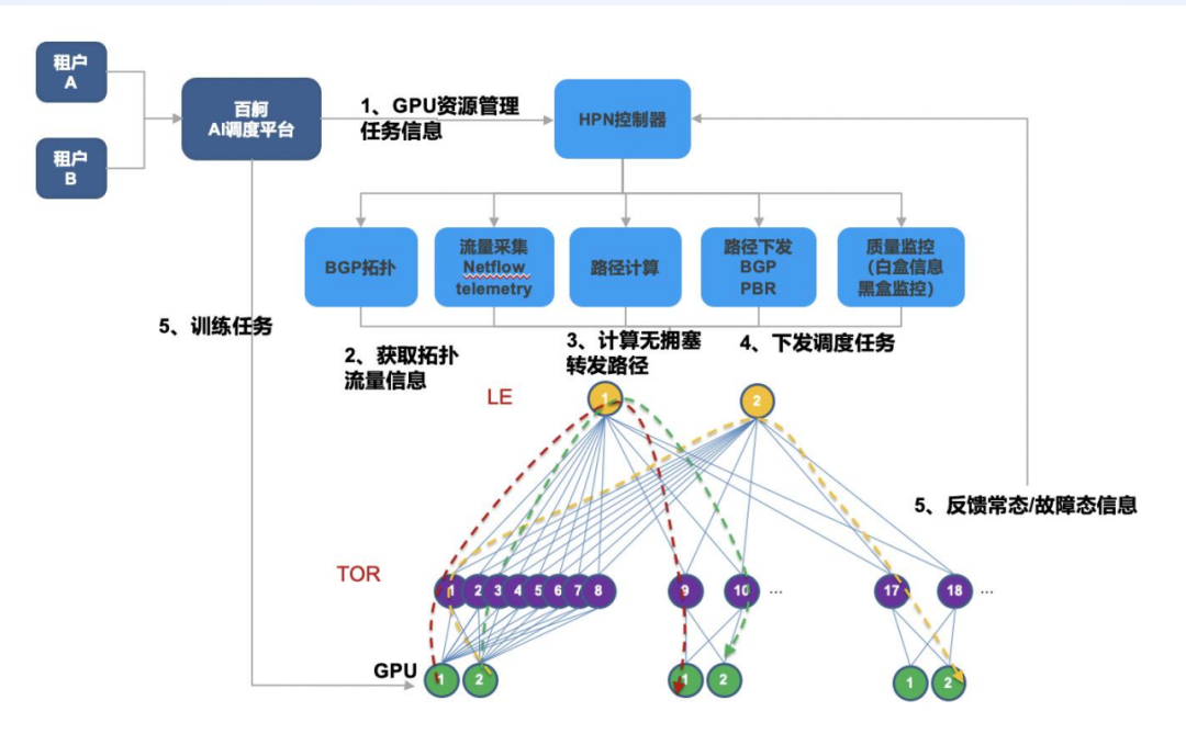图4:HPN网络零拥塞网络管理(引用自《百度AI网络的架构创新与优化之路》)