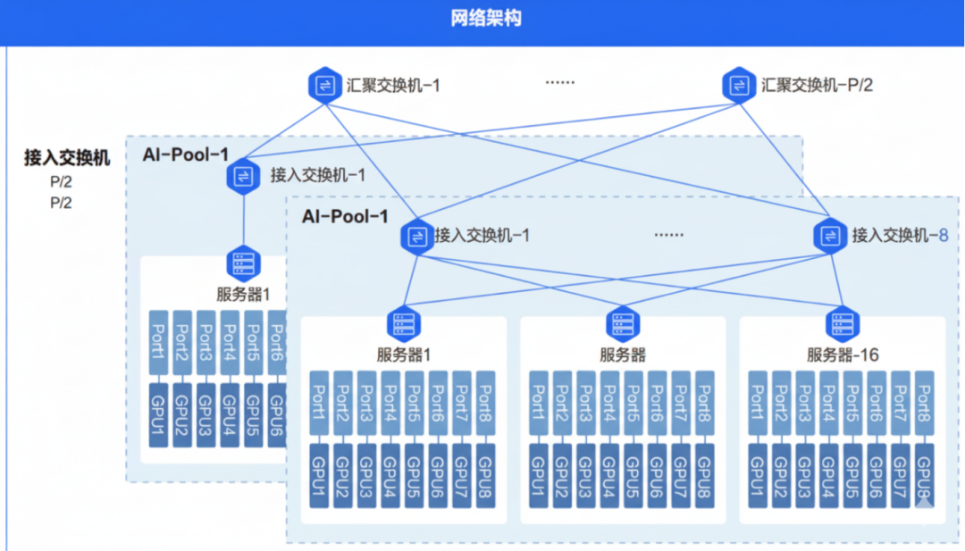 (2)通用标准化POD设计: 万卡集群由多个业界标准化的POD(Point of Delivery)组成: