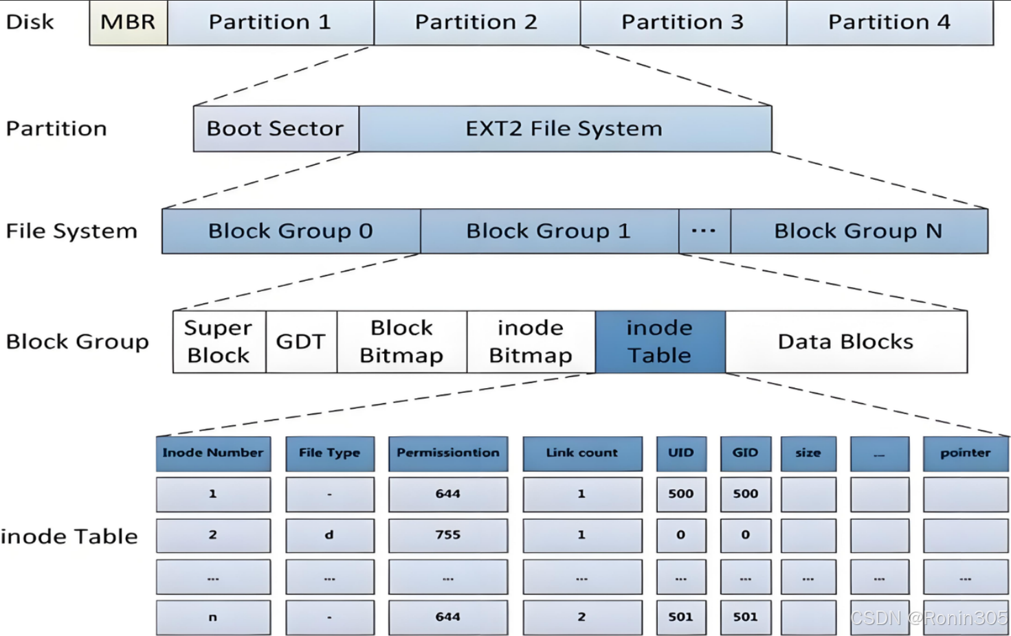 下图展示了ext2文件系统的典型布局: