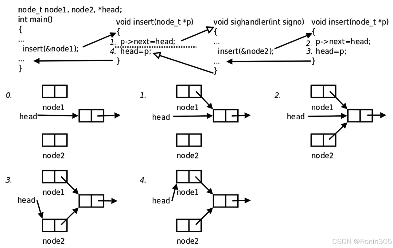 void reentrant_insert(Node** head_ptr, Node* node) {