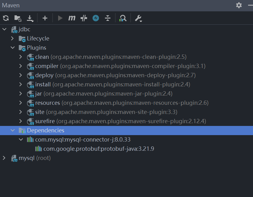 如果说这里的出现了8.0.33也就是刚才在pom.xml 中添加的依赖,也说明已经加载到工程中了