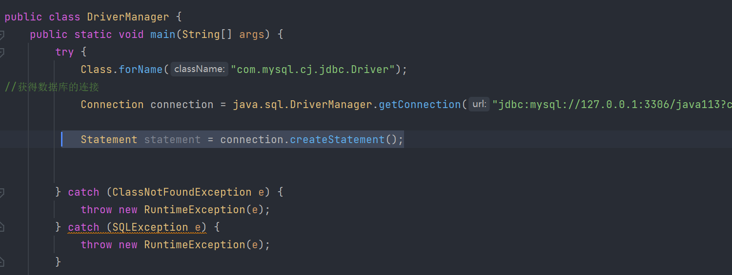 connection = java.sql.DriverManager.getConnection("jdbc:mysql://127.0.0.1:3306/jdbc?characterEncoding=utf8" +