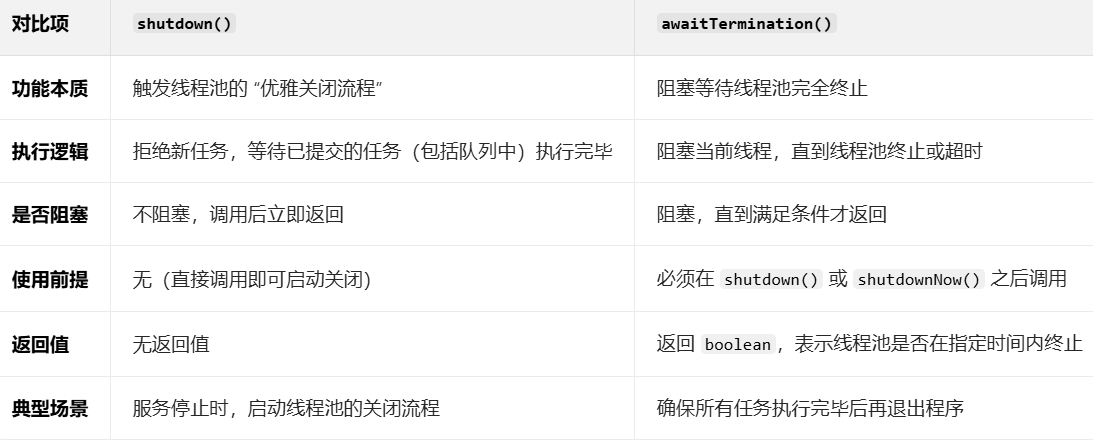 shutdown() 和 awaitTermination() 的区别