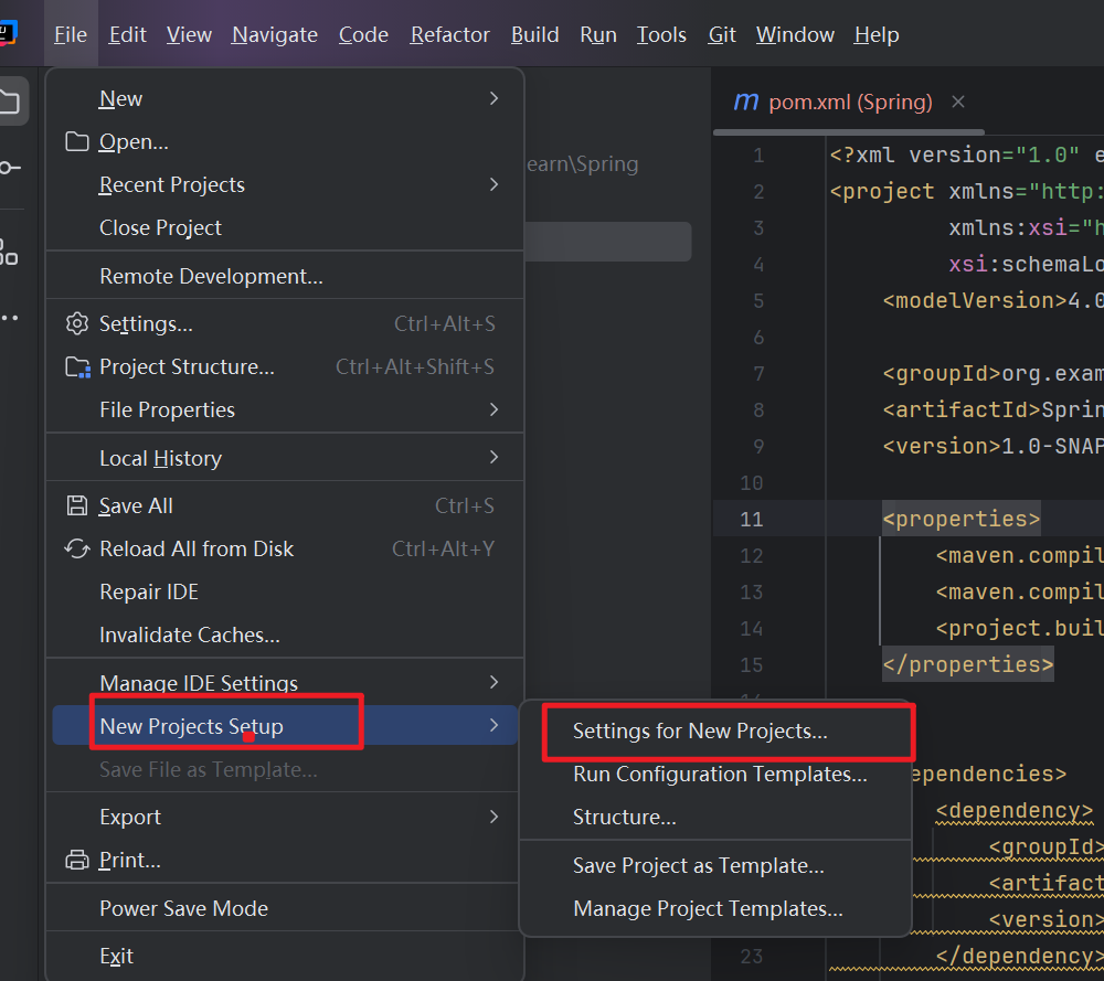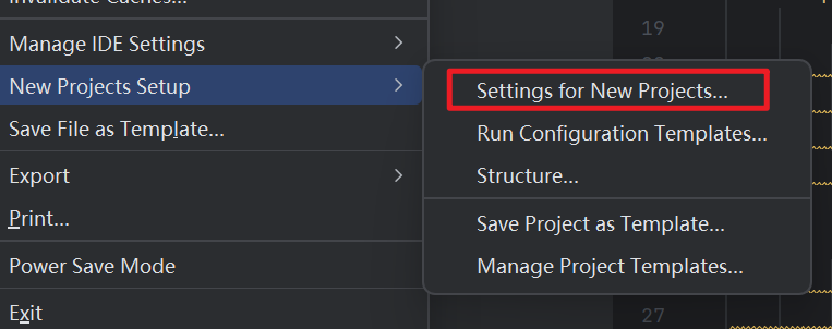 上述配置的内容,只对当前项目生效,为了让后续新建的项目也生效,需要重新设置⼀下新项目的 Settings