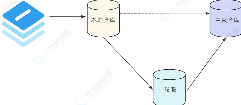 4. 如果中央仓库中存在,就先缓存在私服上之后,再缓存到本地仓库里,再为Maven的下载请求提供服务私服是很多人在使用的,所以只需要第⼀个使用者下载一次就可以
