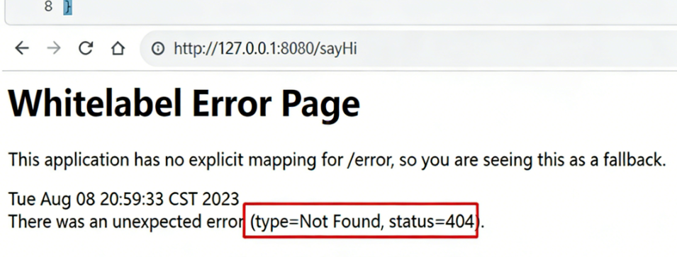 • 输⼊网址:http://127.0.0.1:8080/hello
