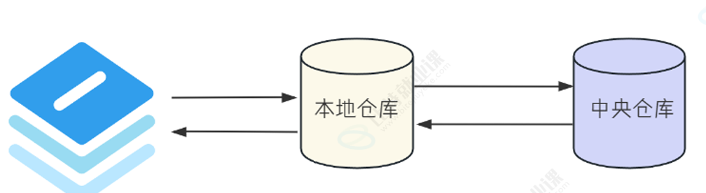 • 如果没有,则去中央仓库中下载对应的jar包到本地仓库