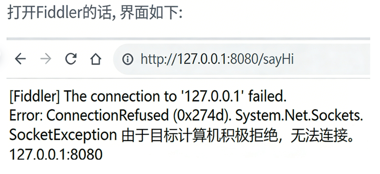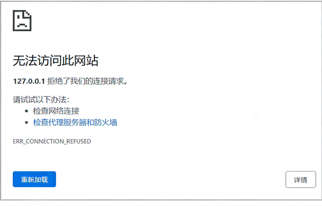 这种情况⼀般是服务未成功启动,也就是tomcat未启动,或者IP/端⼝写错