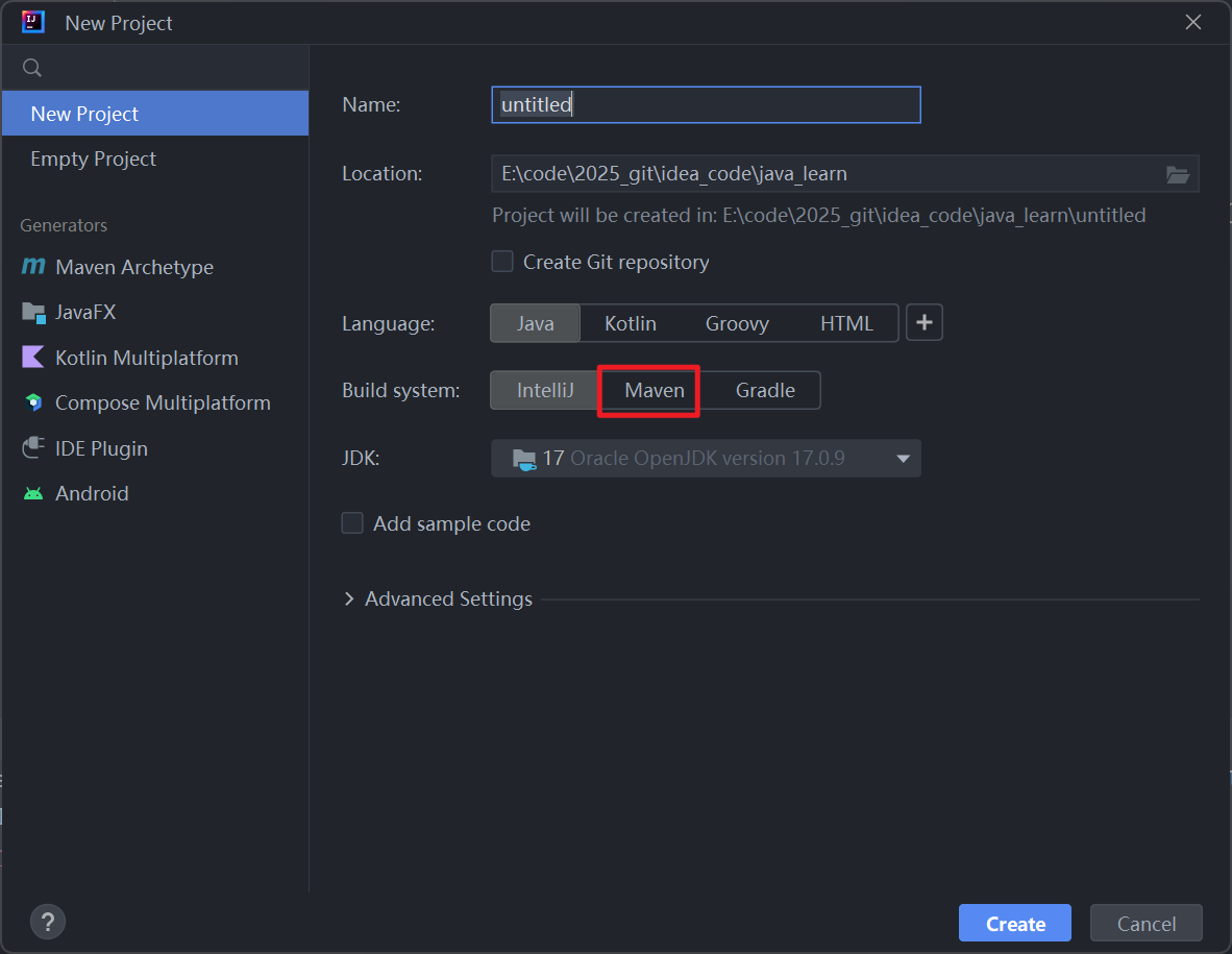 点击Create,就创建好了⼀个Maven项目