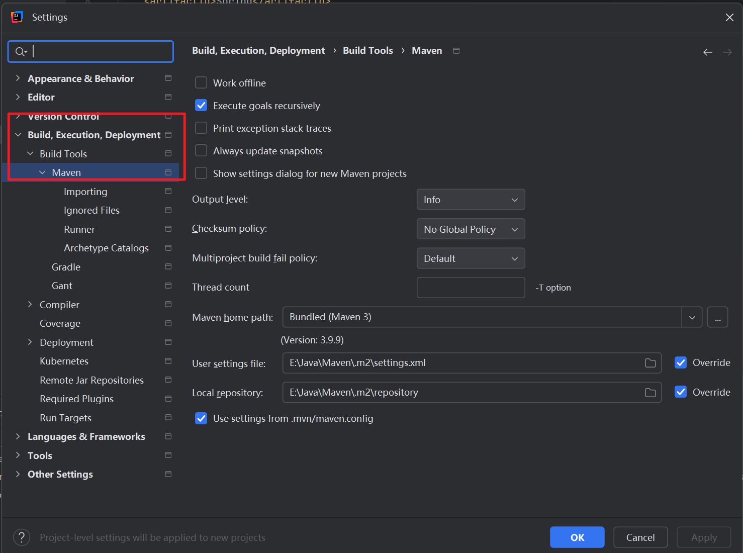 1. 查看配置⽂件的地址,如上图所示、,Maven配置文件地址为: D:\Maven\.m2\settings.xml