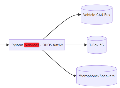系统服务层 | 车载总线(CAN/LIN)、T-Box、传感器 | OpenHarmony Native SDK |