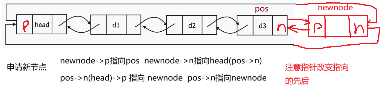 pos->next->prev = newnode;