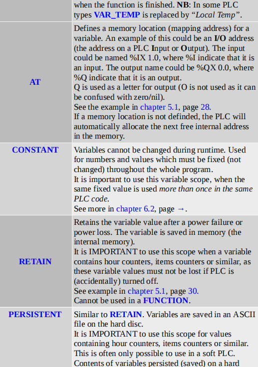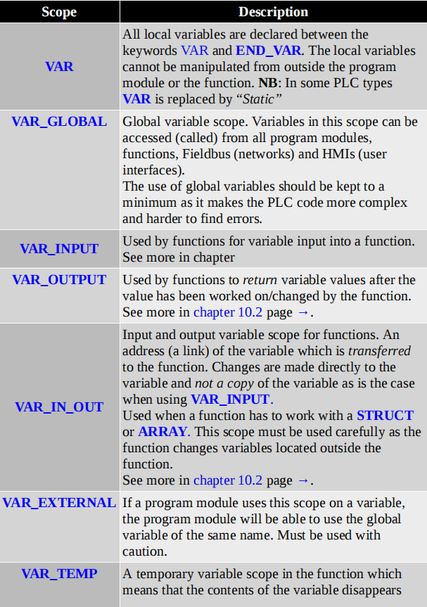 下表展示了PLC程序中最常见的变量作用域类型: