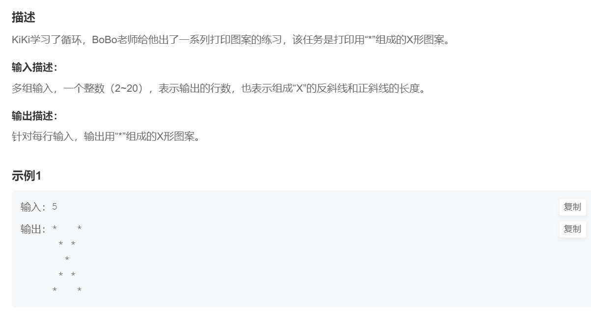 }--题目链接:X型图案_牛客网