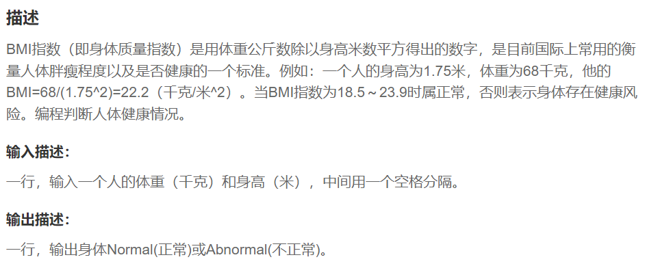 题目链接:牛客网_BC58 健康评估_简单