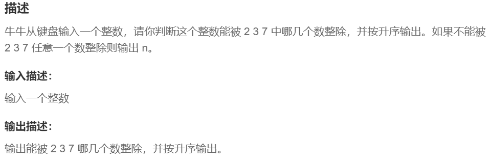 题目链接:牛客网_BC61 牛牛的二三七整除_中等