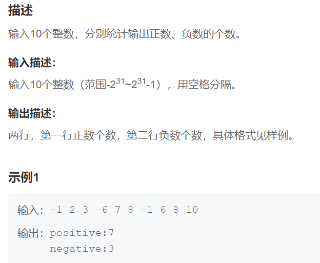 题目链接:牛客网_BC62 统计数据正负个数_简单