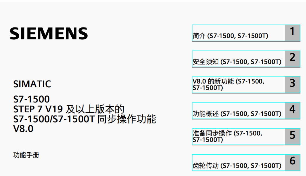 手册几乎把西门子的同步功能介绍的非常详细,包含同步操作工艺对象组态配置、齿轮同步和凸轮同步的指令详细介绍。