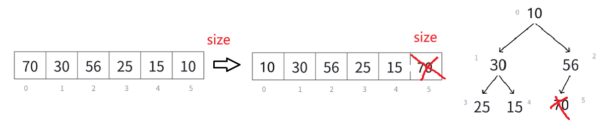 :那就可以尝试将根节点与最后一个节点进行调换。