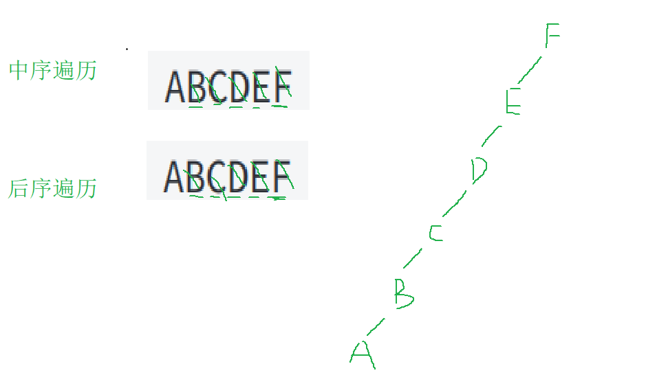 4.某⼆叉树的后序遍历序列与中序遍历序列相同,均为 ABCDEF ,则按层次输出(同⼀层从左到右) 的序列 为 A FEDCBA B CBAFED C DEFCBA D ABCDEF 这题大家可以尝试使用上面的方法不难得出答案选A,但是还有一种更加巧妙的方法,我们可以直接从后序遍历得出根结点为F看选项直接选A。