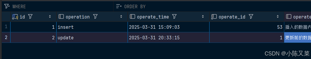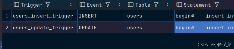 end;然后现在往 users 表中 insert 一条数据,看看是否成功将插入操作日志记录在刚才创建的日志表中