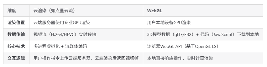 WebGL是本地渲染派:即交互操作用终端(电脑)自己的显卡,本地直接响应操作,实时计算渲染。