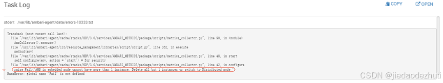 最近碰到了ambari平台ambari metrics相关的lib较大,导致系统盘使用率较高。今天对这个组件进行转移到其他磁盘使用率低的服务器上,在安装好metrice collector组件后,发现启动时一直报如下错误。
