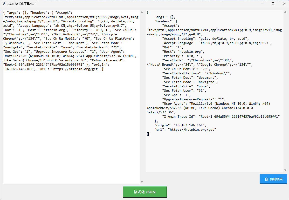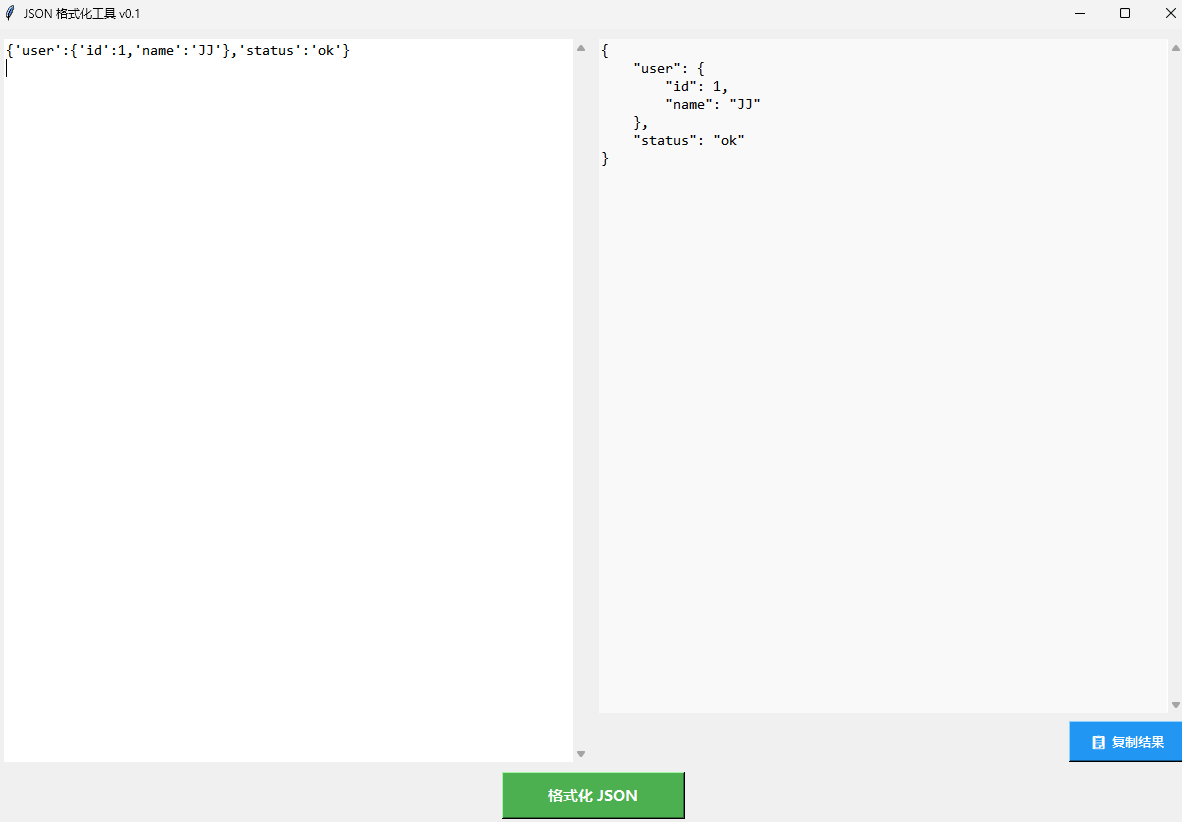 pyinstaller.exe -F -w .\json_formatter.py打包完成后,会在项目下生成一个dist的目录, 里面的 json_formatter.exe 就是生成的可执行文件。
