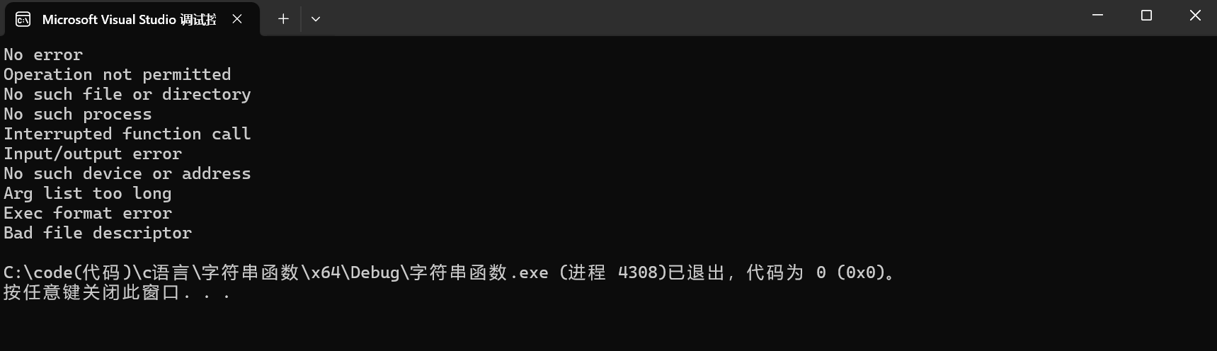//在使用函数发生某种错误时,就会将对应的错误码放在errno中,需要通过strerror进行获取这个错误码